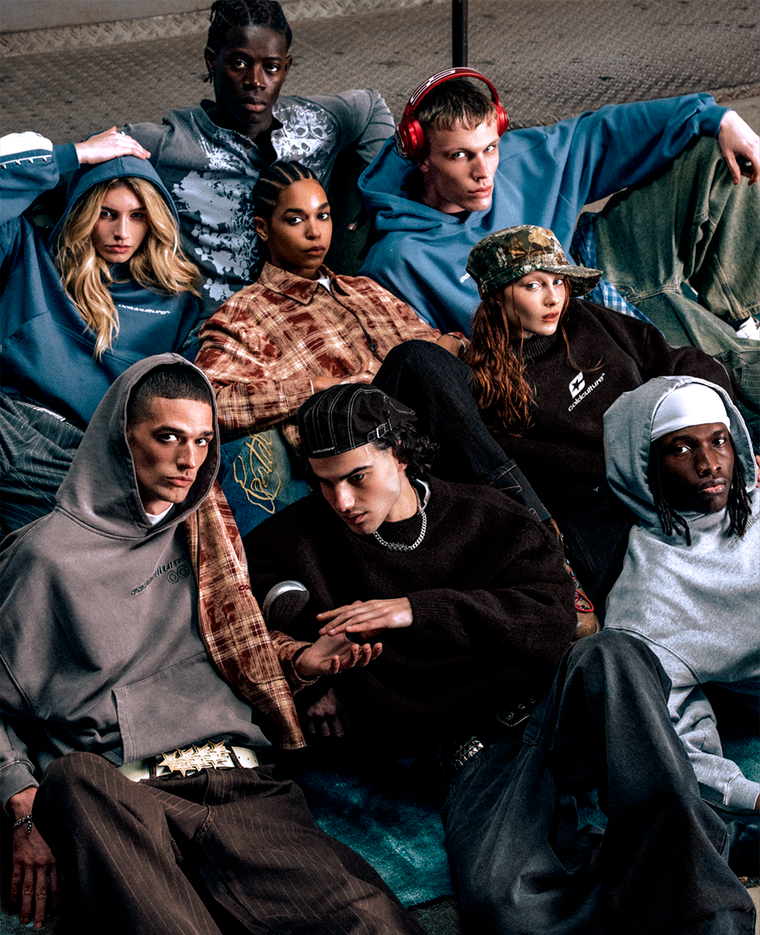 Loose-fitting straight trousers.