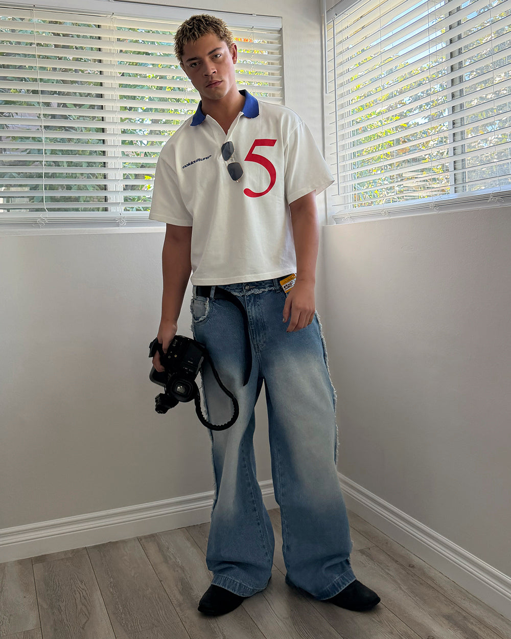 Oversized boxy fit hooded jacket.